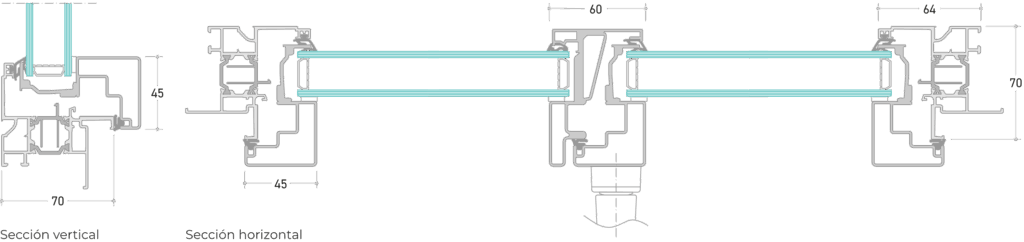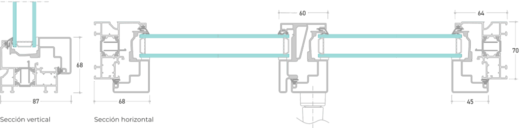 Sólida: una hoja oculta con acero soldado en su interior que mejora la rigidez y resistencia, desapareciendo los cortes a inglete. Permite alcanzar grandes dimensiones de hasta 2 700 mm de altura.